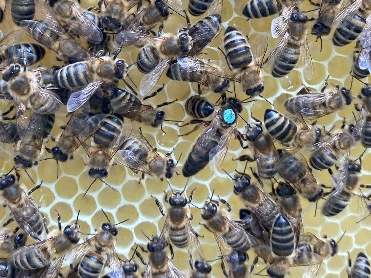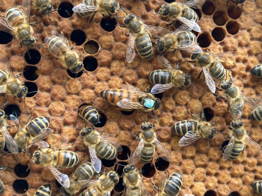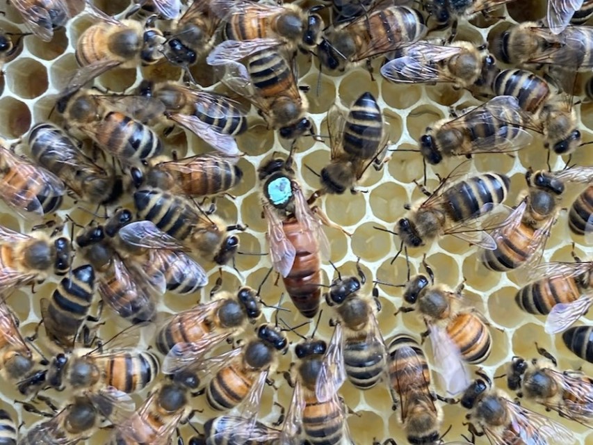 De koningin zal niet in 2023 geboren zijn, de zwerm was erg vroeg in het jaar dus het zal geen nazwerm met een jonge koningin zijn geweest.